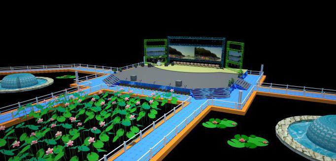 水隱舞臺結構主要由預埋件、鋼龍骨、鋼格柵板、水下 LED彩珠等組成,通過整個承載系統實現舞臺的高承載力和表演藝術的要求。 舞臺整體平整度要求全部舞臺面不得有大于 4mm 的階臺高差,鋼格柵板塊接縫寬度≤5mm。 舞臺面標高-0.45m,蓄水位標高-0.40m,蓄水量達 280m 3 。 在燈光效果方面,在鋼格柵板下安裝水下LED 彩珠 、LED 燈及其連接線,水下防水等級達到 IP68 級, 通過智能控制系統配合其它的表演載體,在夜色的襯托下絢麗多姿, 實現舞臺雄偉壯觀的表演效果,以上情況均對舞臺鋼結構設計和安裝提出了很高的要求。