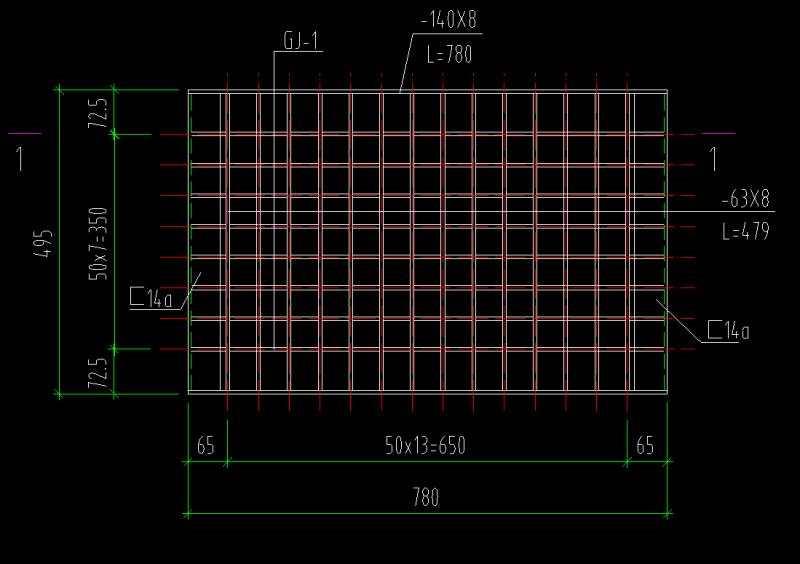 考慮原排水溝寬度和強度初步設計確定重型鋼格板形狀尺寸.排水溝凈寬0.8m,蓋板長度0.495m.排水構沿縱軸級方向基本上是直線.因此從有利于受力的角度看. 重型鋼格板寬度寬一些好。這樣蓋板的整體性好?紤]到澆注和預制、運輸和安裝方便,并避免使用大里吊裝設備.將重型鋼格板寬度定0.78m。