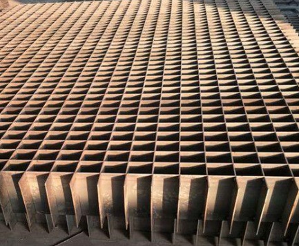 火力電站SCR脫硝系統的重要功能組件整流格柵是通過格柵的整流作用,將進入整流格柵前與豎直流通方向存在一定夾角的煙氣,在整流格柵的每個長方體格柵單元中進行氣氣湍流耗散、氣固碰撞后,使流岀整流格柵的煙氣流動方向基本豎直向下。更重要的是,整流格柵使夾雜在煙氣飛灰顆粒物在格柵壁中進行固固撞擊,然后豎直下落,使下方的催化劑壁面不被固體顆粒沖蝕,避免由此引起的催化劑堵塞、失活。